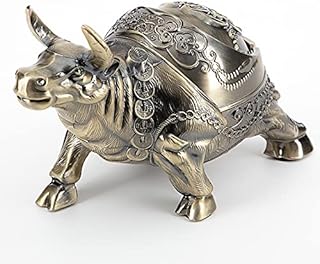 Ansimple 灰皿 蓋付き灰皿 卓上灰皿 合金ボックス 収納ボックス 合金製 アンティーク調 卓上 屋外 店舗 オフィス 置物 インテリア (牛の型)