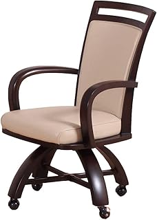 天然木製 高耐久 ラバーウッド ダイニングチェア 回転チェア 1脚 キャスター付き 肘付き (ダークブラウン)