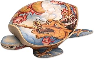 NOVICA マルチカラー ドラゴンハート カメ 木製ジュエリーボックス