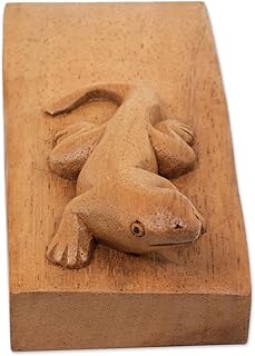 NOVICA ブラウン 手彫り スアーウッド トカゲ ドアストッパー 「ハンディヤゴイ・イン・ブラウン」