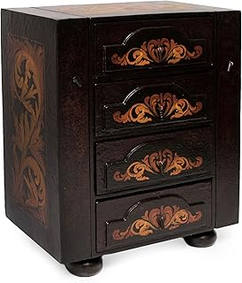 Garden Of Arts 多目的 ハンドメイド フローラル彫刻 アンティーク仕上げ 木製ジュエリーボックス オーガナイザー 8 x 5 ブラウン