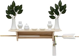 神棚の匠 神棚 モダン [ 棚板 破魔矢さし付き ナチュラル ] 【神具7点セット 小/人工榊 2本付き】 ■外寸 高さ約12cm×幅約45cm×奥行約12cm ■壁掛け用金具付き お札立て おしゃれ セット モダン神棚 神棚板 神具セット シンプル コンパクト 破魔矢さし付き ナチュラル