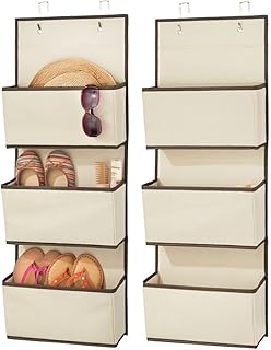 mDesign ドア掛け吊り下げ式収納オーガナイザー 柔らかい生地 寝室や廊下、玄関、玄関、玄関、玄関、玄関、玄関、玄関、玄関などのクローゼットに フック付き Pack of 1 ブラウン 00569MDCO