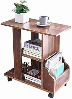 KMAYA サイドテーブル 可移動デスク キャスター付き ミニ机 おしゃれ ベッドサイドテーブル コの字型デザイン 実用的 二段収納棚 付きテーブル 品質保証 (ダークブラウン)