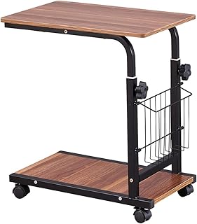 NeatClean サイドテーブル 昇降式 コの字型デザイン 可移動デスク キャスター付きデスク 収納棚 付き ナイトテーブル 汚れの除去が簡単 (ブラウン)