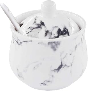 123Arts Ceramics 大理石模様 シュガーソルトペッパーストレージジャー 調味料ポット 蓋とスプーン付き