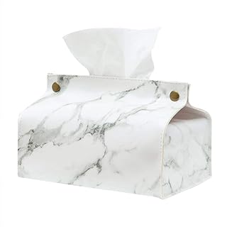 Demiawaking ティッシュケース ティッシュボックス 大理石模様 PUレザー 北欧風 オシャレ エレガント インテイア オフィス 白