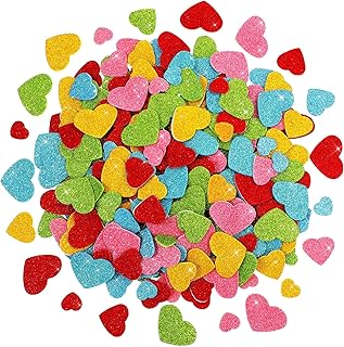Zhehao グリッターハート形ステッカー フォームステッカー カラフルな自己粘着デカール バレンタインデー/ウェディング用品用 各種サイズ (600)