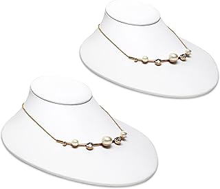 MOOCA ホワイトフェイクレザー レイダウンネックレス バストディスプレイ ジュエリーディスプレイネックレスチェーン ジュエリーバストディスプレイホルダースタンド 2個 ホワイトフェイクレザーネックレス ジュエリーオーガナイザー ネックレス バストホルダー ジュエリーネックレス バスト