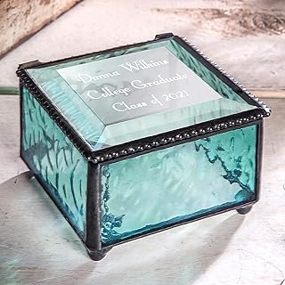 卒業祝い ジュエリーボックス ブルー刻印ガラス 記念品 高校卒業または大学卒業クラス2019年 娘 孫娘 女の子 友達 J Devlin Box 898 EB217-3