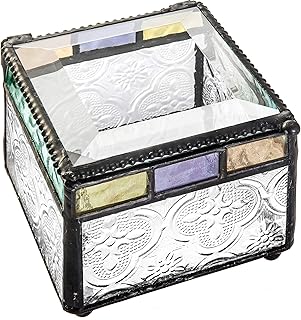 カラフル ステンドグラス ボックス ジュエリー ディッシュ 小物 記念品 ディスプレイ 装飾 ヴィンテージ ホームデコ パープル ブルー ピーチ ターコイズ ギフト 妻 友人 娘 孫娘 J Devlin ボックス 905