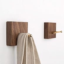 miidoo ウォールハンガー 壁掛け フック 壁 フック ハンガー フック 壁 木製 コートフック 洋服掛け 帽子 玄関 寝室 浴室 (黄銅方柱型, 黒クルミ三つ)