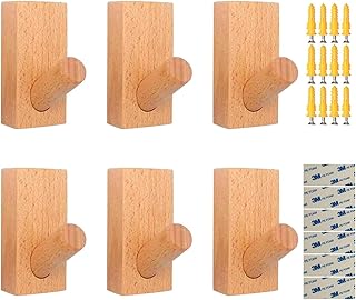 壁掛けフック 木製フック ブナ ウォール 収納フック ハンガー 装飾用壁フック 帽子掛け 洋服掛け コート掛け 玄関 寝室6個セット (ブナ)