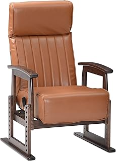 エムール リクライニングチェア 高座椅子 座椅子 パーソナルチェア レバー式 14段階 可変 ひじ掛け付き オットマン付き ハイバック ブラウン