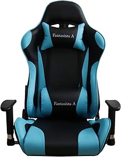 ゲーミング座椅子 FantasistaA 約180度リクライニング ハイバック クッション付き ヘッドレスト ランバーサポート アームレスト 回転座椅子 回転椅子 ゲーミングチェア 360度回転 ひじ掛け付き PUレザー (Blue)