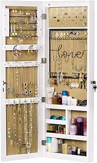 WATERJOY ミラージュエリーキャビネット ロック可能 壁/ドアマウントストレージ ジュエリーキャビネット フルレングス ジュエリーオーガナイザー