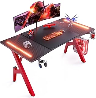 HLonone ゲーミングデスク パソコンデスク LEDゲームデスク ゲーマーに向け 幅 120 cm×奥行60cm 耐荷重100kg A字フレーム 組立簡単 レッド