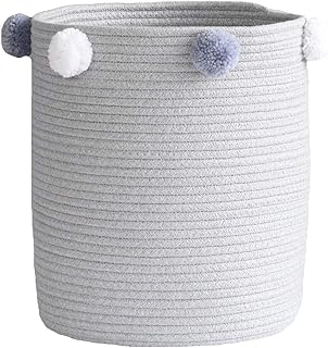 KOMONE ロープバスケット 収納バスケット 収納かご 可愛い 折り畳み式 インテリア 厚手 服 タオル おもちゃ 小物入れ (グレー)