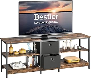 Bestier テレビ台 テレビボード tv スタンド テレビラック 幅150㎝ 32~65V対応 ローボード 木製 ロータイプ おしゃれ 収納棚付き 隠す収納スペース モダン ヴィンテージ (150x40x55.5, ブランウ)